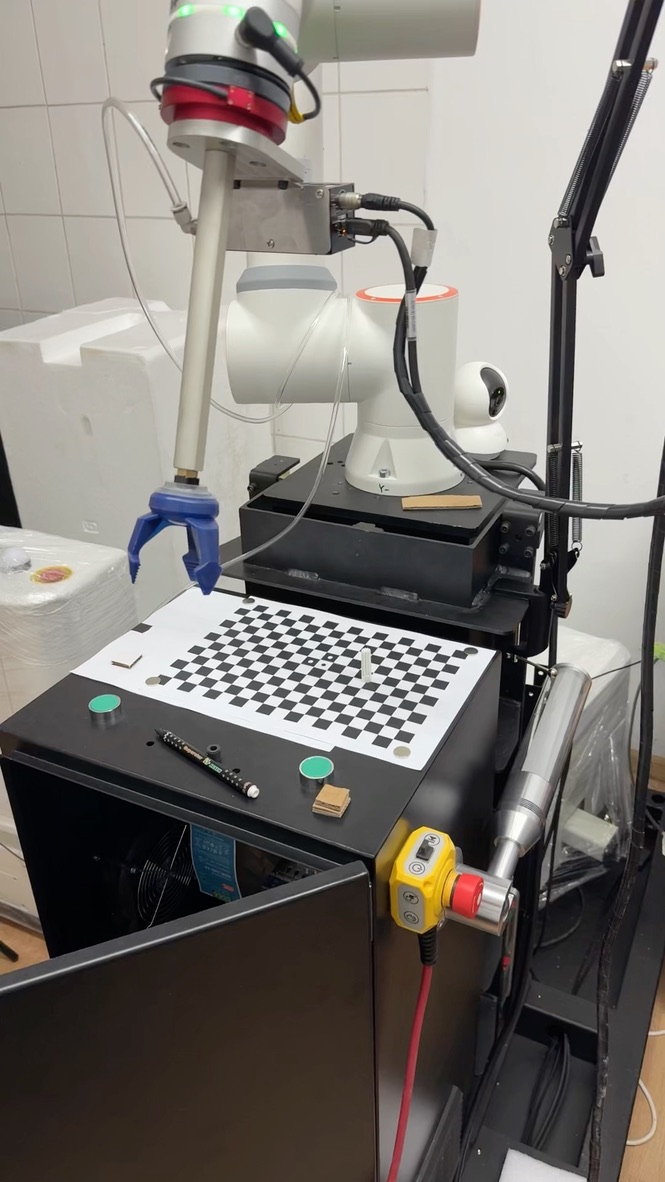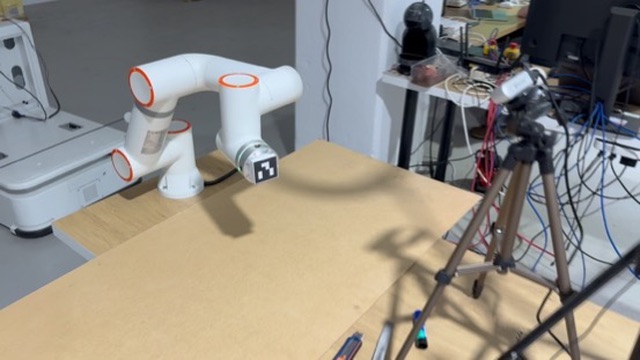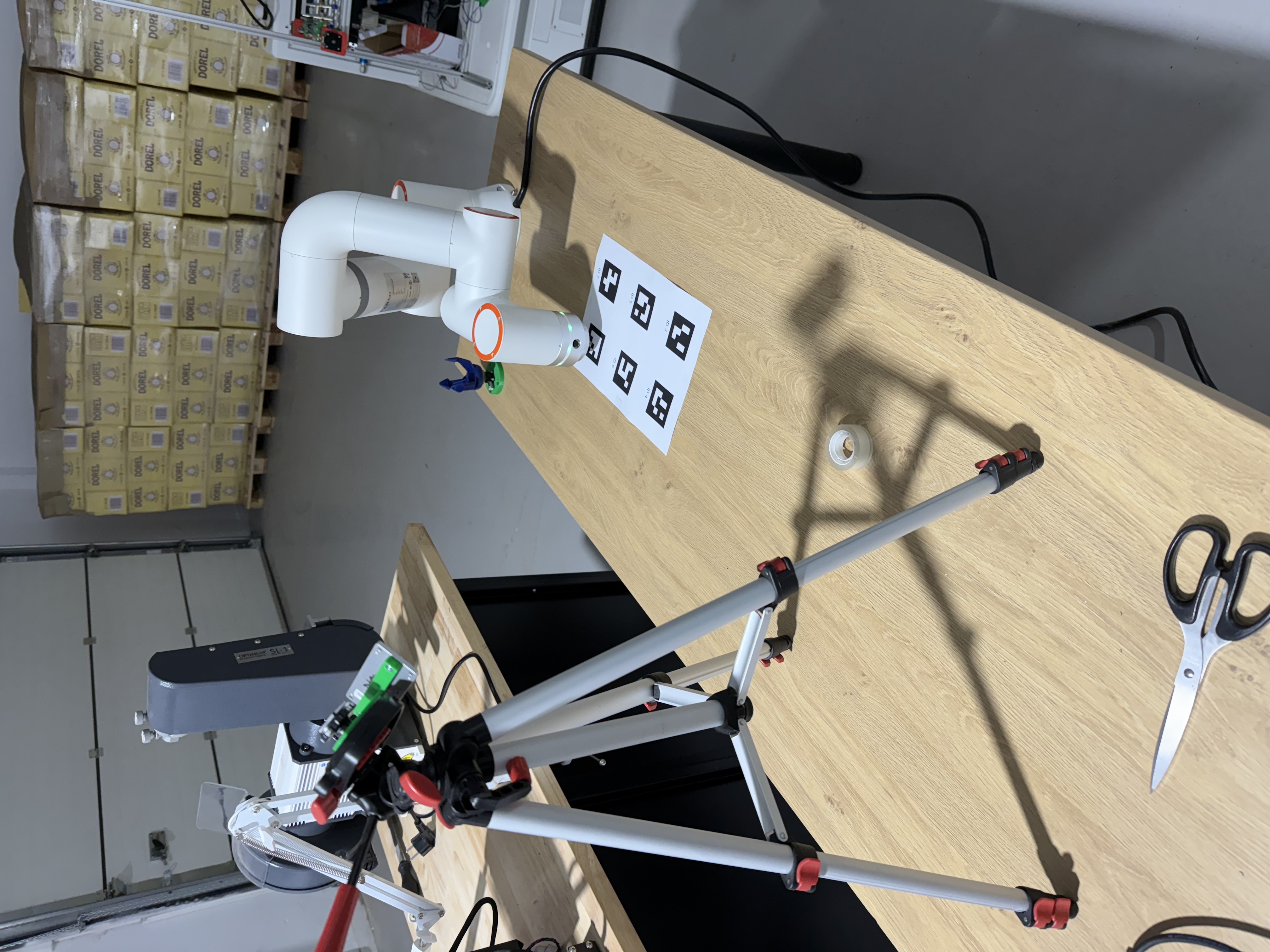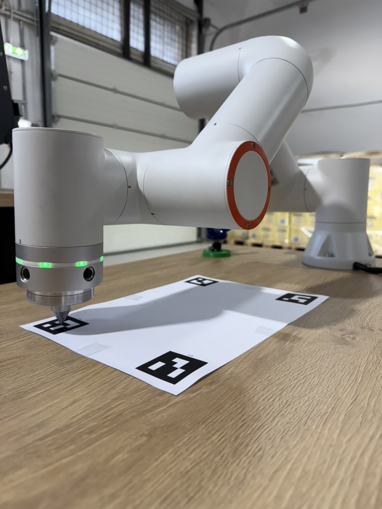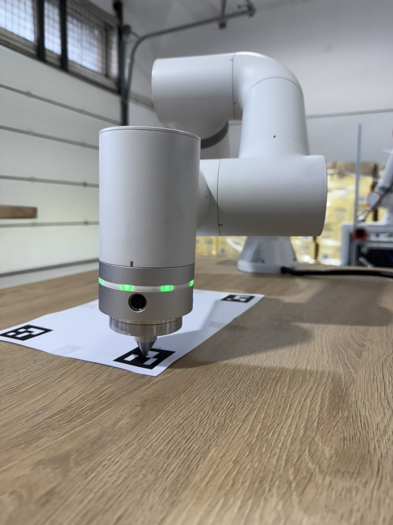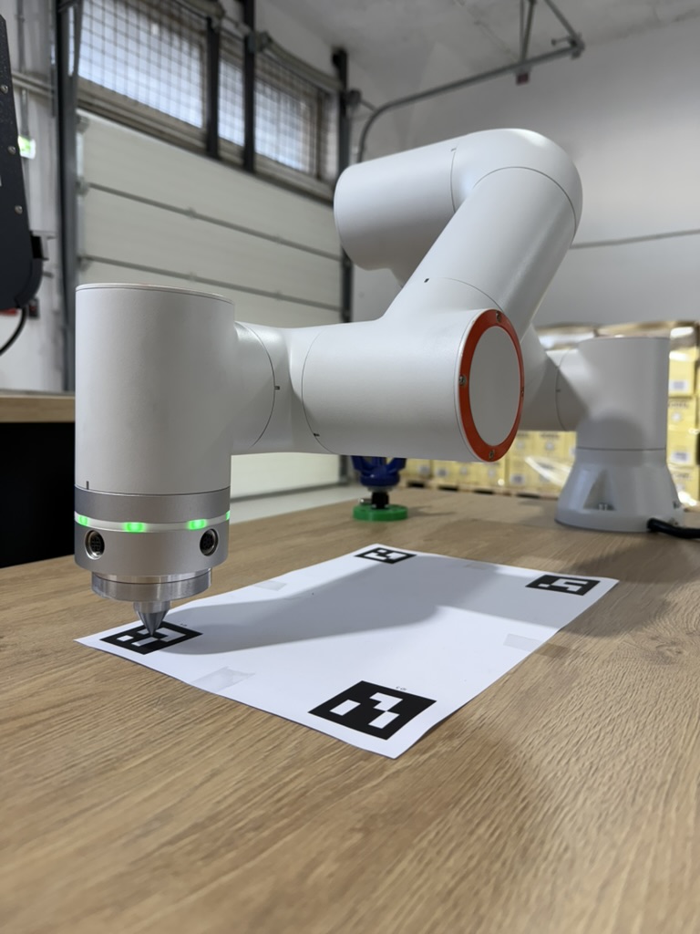 - Developed an automatic camera-to-robot calibration routine: the robot moves an ArUco marker through ~100 known poses, logging robot and camera data to compute and validate the transformation matrix