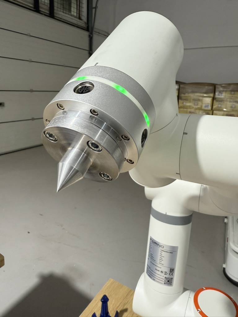 - Custom EOATs: pneumatic, electromechanical, and soft grippers with interchangeable fingers and force sensors